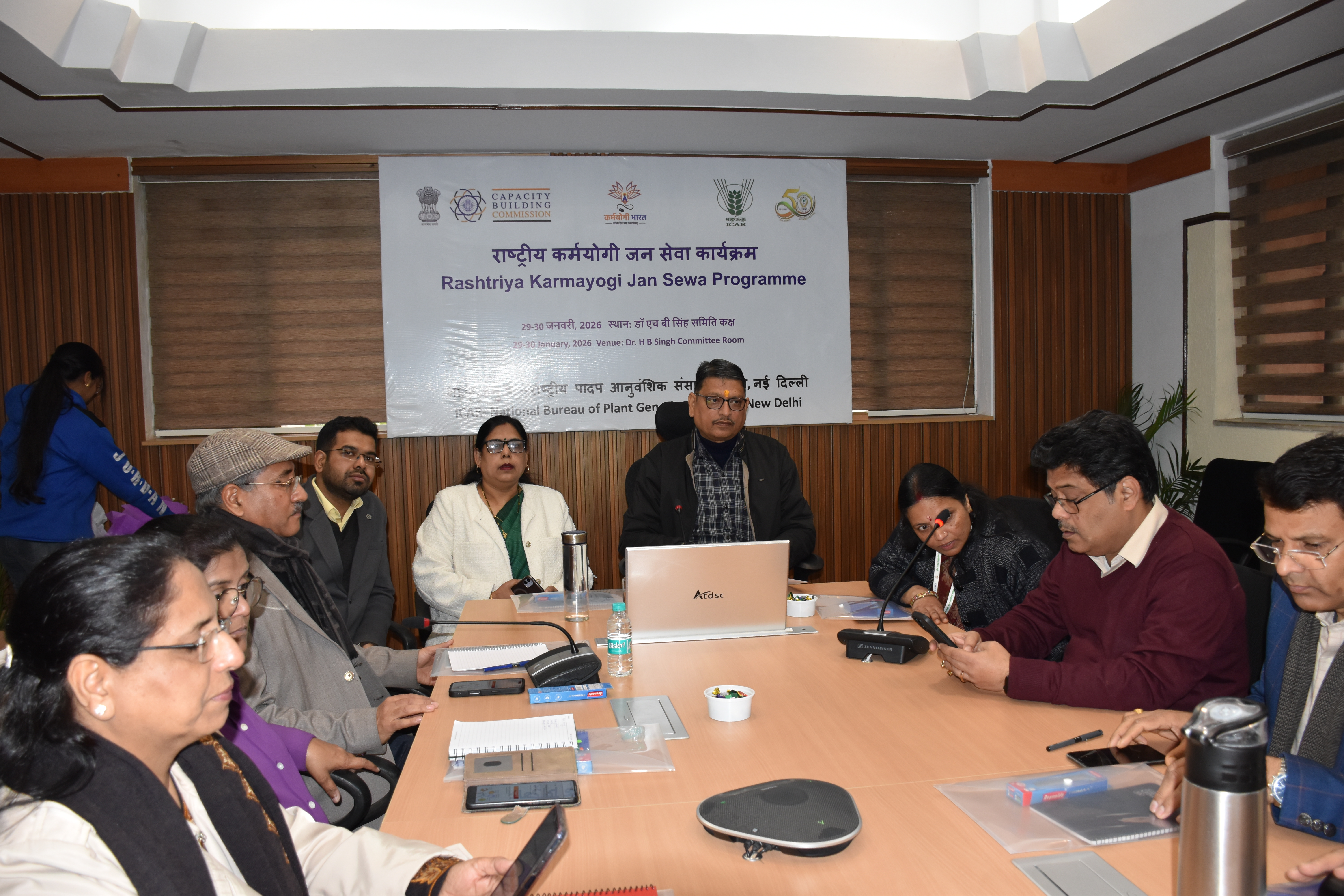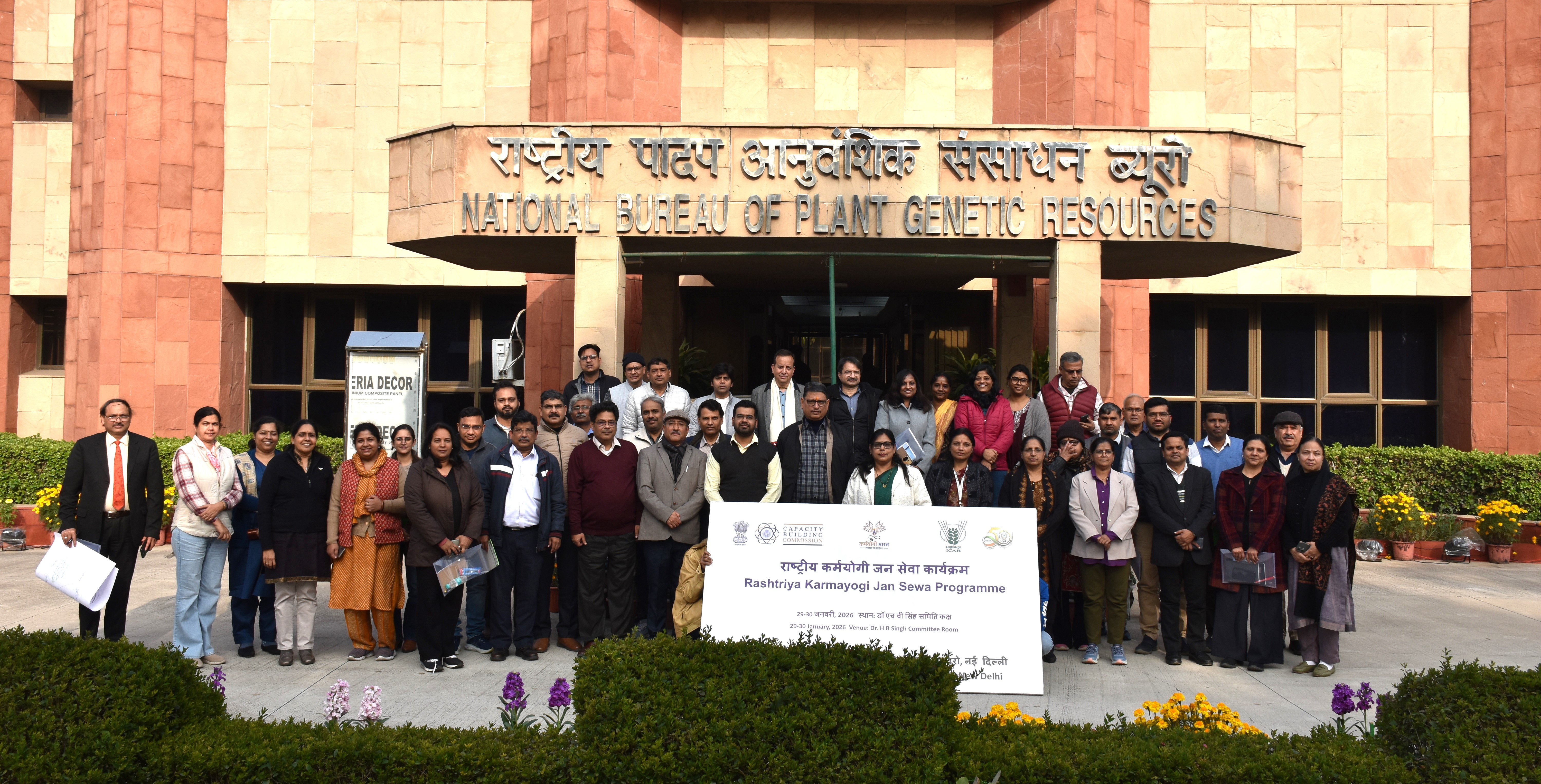 Two one-day Rashtriya Karmayogi Jan Seva programmes were organized on 29 and 30 January 2026 at ICAR–National Bureau of Plant Genetic Resources (NBPGR), New Delhi, with participation of 42 and 55 officials, respectively. The programme was conducted under Mission Karmayogi, an initiative of the Capacity Building Commission, Government of India, in collaboration with the knowledge partner Illumine Knowledge Resources (P) Ltd., with the objective of fostering a citizen-first approach and strengthening Seva Bhav among government officials. The sessions were led by Master Trainers Dr. Nidhi Verma and Mr. Prateek Gaur, who engaged participants through interactive discussions and experiential learning to promote values of empathy, accountability, and effective public service delivery. The programme was successfully conducted and contributed to enhancing the service orientation and professional outlook of the participants in line with the vision of Mission Karmayogi.
